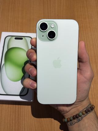 Vendo iPhone 15 Verde in ottime condizioni💚 📱 Modello: iPhone 15 💾 Archiviazione: 128 GB 🔋 Batteria: 87% 🎨 Colore: Verde 📦 Include: Scatola originale, cavo di ricarica, 1 custodia regalo + vetro temperato non montato (nuovo) 🧩 Tutto originale di fabbrica, senza modifiche o riparazioni 🚫 Libero da iCloud e SIM, pronto per l'uso con qualsiasi operatore ✨ Stato: Ottimo — sempre protetto con custodia e vetro 💬 Rispondo immediatamente e posso inviare altre foto se necessario 📥 Consegna a mano a Madrid o spedizione rapida e assicurata tramite app 🚀 iphone, apple, 11, 12, 13, 14, 16, 17, pro, pro max