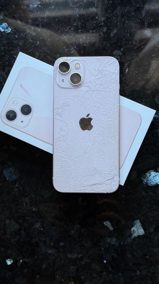 Telefono mobile Apple iPhone 13 in colore rosa. Funziona perfettamente, come si vede nelle foto il retro è screpolato. Batteria al 65%. - Schermo da 6,1 pollici. - Sistema a doppia fotocamera. - Capacità di archiviazione di 128 GB.