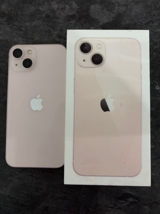 Telefono mobile di colore rosa. Modello iPhone 13. Capacità di archiviazione di 128 GB. Non ha la scatola per perdita durante il trasloco. Salute della batteria 80%. Un solo proprietario. Danni estetici visibili nelle foto dell'uso.