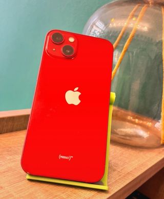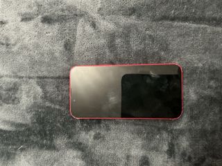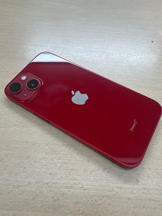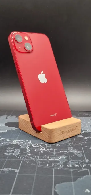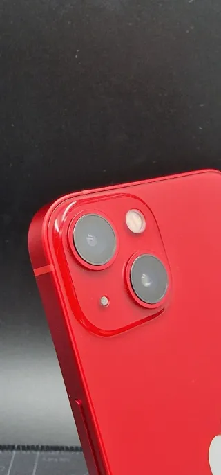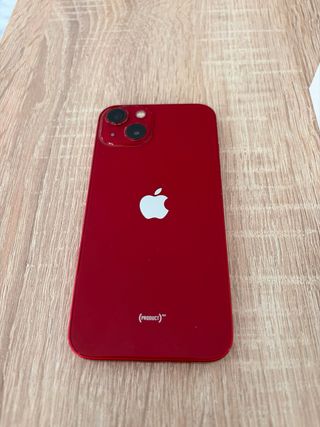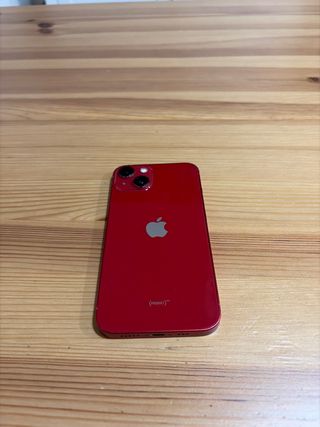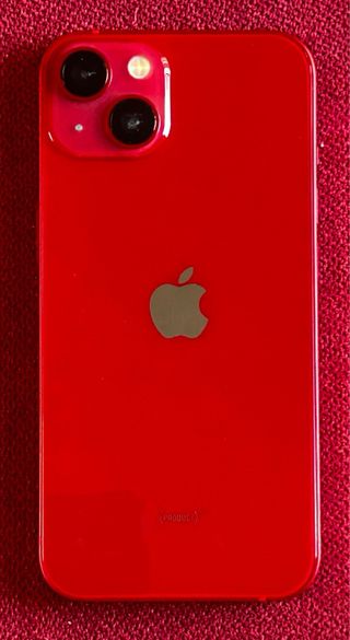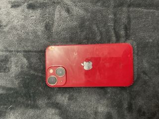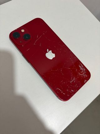 iPhone 13 in colore rosso con 128GB di spazio di archiviazione. Presenta un difetto sulla parte posteriore. Modello: iPhone 13, Capacità: 128GB, Colore: Rosso.