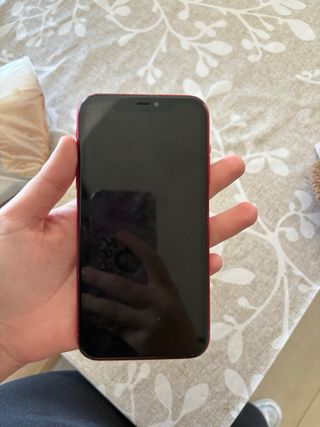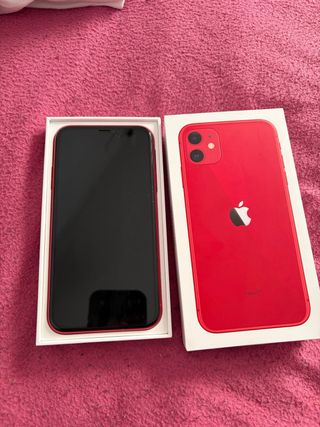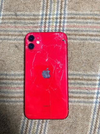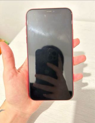 Telefono cellulare iPhone 11 in colore rosso. - Schermo da 6,1 pollici. - Fotocamera doppia da 12 MP. - Chip A13 Bionic. - Batteria al 73% di salute. (Parte posteriore danneggiata)