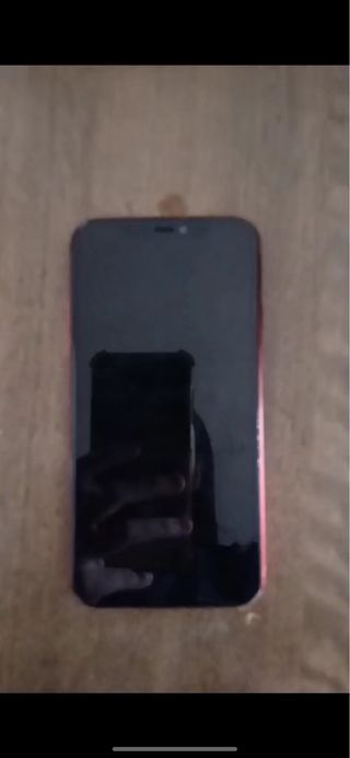 Telefono cellulare iPhone 11 in colore rosso. - Schermo da 6,1 pollici. - Sistema a doppia fotocamera. - Chip A13 Bionic. Batteria al 77%. Piccole graffiature sullo schermo ma non influiscono sull'uso e non si vedono praticamente.