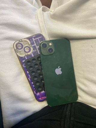 Telefono cellulare iPhone 13 in colore verde. Può essere venduto di persona e si può vedere che funziona perfettamente. Ha solo un piccolo graffio visibile nelle foto. Ascolto offerte