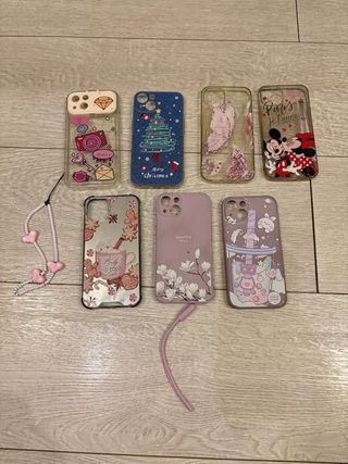 Varie cover per iPhone 13 con diverse fantasie. €1 cad. Tutte €5 - Cover trasparente con decorazioni (diamante, macchina fotografica, cuori). - Cover blu con albero di Natale e scritta Merry Christmas. - Cover trasparente con farfalle rosa. - Cover con Topolino e Minnie e scritta Paris je t'aime. - Cover con biscotti di pan di zenzero e tazza Baby it's cold outside. - Cover lilla con fiori bianchi e scritta beautiful flowers. - Cover lilla con personaggio stile bubble tea e coniglietto.