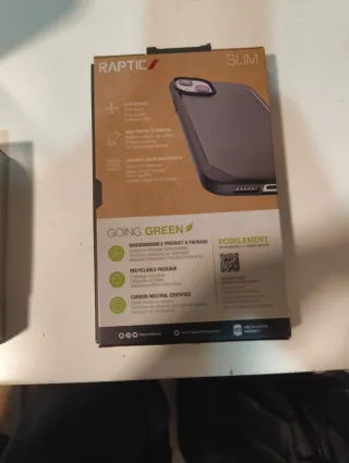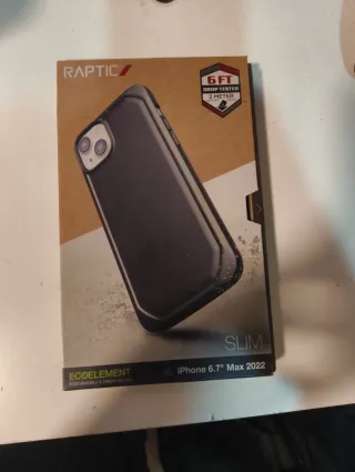 Custodia protettiva Raptic per iPhone 14 Plus. Solo aperta per verificare lo stato del prodotto. Non utilizzata. - Protezione contro cadute fino a 2 metri (Military Grade). - Design SLIM. - Materiali biodegradabili e a carbonio neutro (Ecoelement).