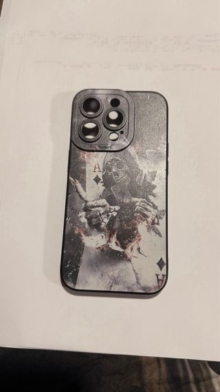 Cover protettive con un design accattivante di teschi, due delle quali, una di libro color porpora e un'altra con protezione extra. - Cantoniere nuove nella loro scatola, con protezione per le fotocamere. - Caricatore wireless nuovo senza utilizzo. - Cavi per questo modello. - Altre cose incluse.