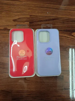 Varietà di cover per iPhone 14 PRO disponibili in diversi colori. Prezzo: 3€ ciascuna. Rimangono: - Cover verde - Cover blu - Cover arancione - Cover turchese - Cover lilla Abbiamo un negozio e puoi venire a ritirare la tua cover in Avenida de Holanda 14, Local 75. San Juan playa, Alicante.