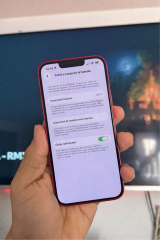 iPhone 14 in colore rosso con 128GB di spazio di archiviazione. La batteria è all'85% della sua capacità. Capacità di 128GB. Batteria all'85%. Ubicazione zonamovil Avd Valencia 34 12006 Telefono 864880365