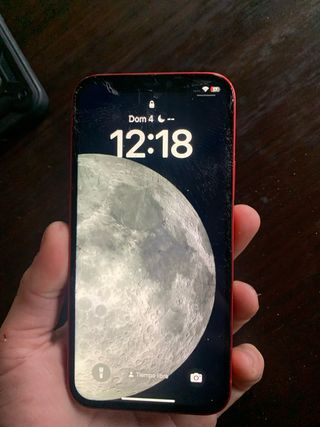 Telefono cellulare iPhone 12 in colore rosso. - Molte custodie in regalo + cristallo posteriore nuovo per eventuali sostituzioni - Schermo da 6,1 pollici. - Fotocamera doppia da 12 MP. - Chip A14 Bionic. - Funziona perfettamente ma ha lo schermo rotto e il cristallo posteriore (lo tengo per sostituirlo) non influisce affatto.