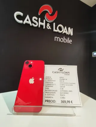 iPhone 14 in colore rosso con 128GB di spazio di archiviazione. Display Super Retina da 6,1 pollici. Fotocamera dual da 12 MP. Processore A15 Bionic. Batteria da 3279 mAh (84% salute). Sistema operativo iOS 16. Garanzia di 1 anno. CASH LOAN MOBILE. Negozio di telefonia nuovo, usato e ricondizionato affidabile in Avda. Constitución 53, Torrejón de Ardoz, Madrid.