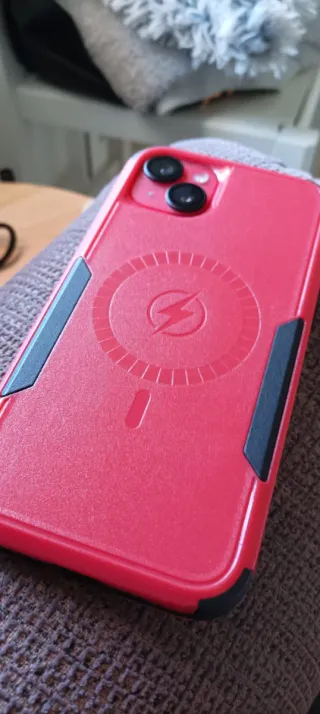 Telefono cellulare iPhone 14 Plus in colore rosso. Include: - Cover protettiva delle migliori del mercato, compatibile con la ricarica senza fili - Base di ricarica senza fili - Caricabatterie con cavo iPhone a ricarica rapida Visita il mio profilo per vedere l'Iwatch abbinato da 45mm. Prezzo dei due insieme 600€ - Schermo da 6,7 pollici. - Fotocamera dual da 12 MP. - Chip A15 Bionic.
