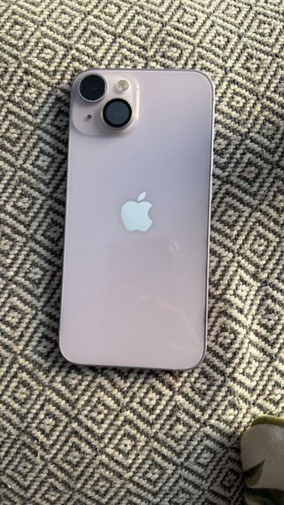 Telefono cellulare iPhone 14 in colore viola con una capacità di archiviazione di 256GB. Con batteria all'80%. Modello: iPhone 14, Colore: Viola, Capacità: 256GB.