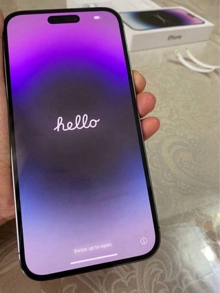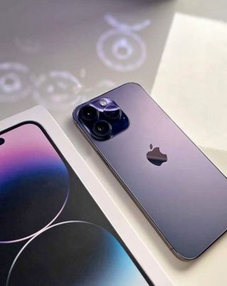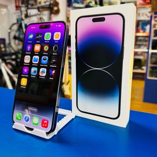 Telefono cellulare iPhone 14 Pro Max in colore viola. Design elegante e moderno. Finitura premium. Viene fornito con custodie, scatola originale e cavo di ricarica.