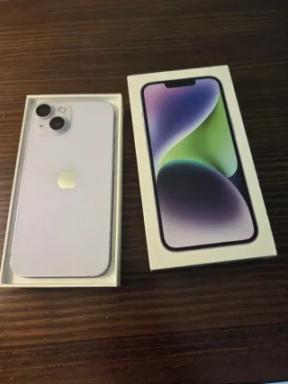 iPhone 14, viola, 128Gb, senza graffi, con protezione anti-spia. Include la scatola. Prezzo negoziabile