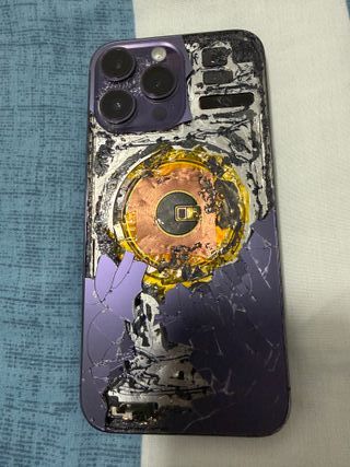 iPhone 14 Pro Max da 128GB viola. Il telefono funziona perfettamente nonostante la parte posteriore sia rotta. Batteria al 83%. Lo vendo perché ho acquistato il nuovo modello. In regalo 5 nuove custodie e cavo originale.