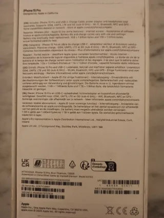 Scatola Apple iPhone 15 pro blu 128 gb