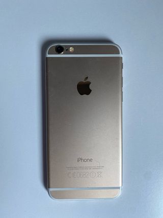 Telefono cellulare iPhone 6 in colore oro e bianco. - Schermo da 4,7 pollici. - Fotocamera posteriore da 8 MP. - Sensore di impronte digitali.
