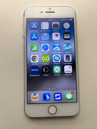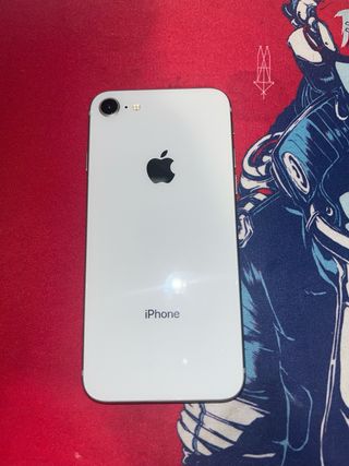 Telefono cellulare iPhone 8 in colore argento e bianco. Si trova in perfette condizioni. Custodia INCLUSA nel prezzo. Si consiglia di sostituire la batteria (44%). - Schermo da 4,7 pollici. - Fotocamera posteriore da 12 MP. - Chip A11 Bionic.