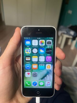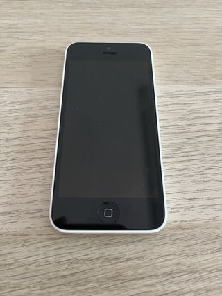 Telefono cellulare iPhone 5C in bianco. - Schermo da 4 pollici. - Fotocamera posteriore da 8 megapixel. - Capacità di archiviazione di 5GB.