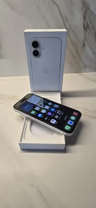 Telefono cellulare iPhone 16 in bianco con grande capacità di archiviazione, usato solo per 4 mesi - 256 GB di memoria interna.