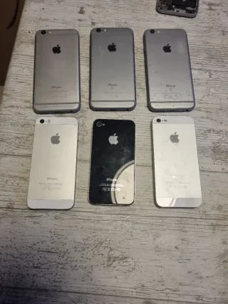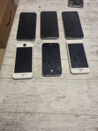 In vendita lotto di 6 telefoni iPhone in colori nero e bianco. - Include 3 iPhone 6. - Include 2 iPhone 5. - Include 1 iPhone 4. Sono fermi da molti anni, immagino funzionino e se no, per pezzi. 50€ unità (250€ totali)