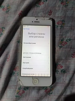 Telefono mobile Apple iPhone 5s in bianco. Lo schermo presenta crepe. - Schermo con rotture. - Modello da 4 pollici.