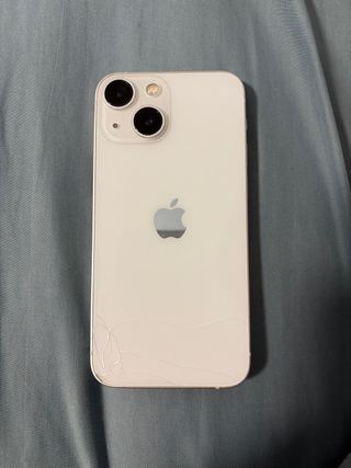 Telefono cellulare iPhone 13 mini in colore bianco. - 3 custodie - 2 protezioni per lo schermo - Schermo da 5,4 pollici. - Sistema di fotocamera dual avanzato. - Chip A15 Bionic. - Stato della batteria 77%