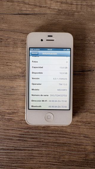 Puoi consultare altre offerte. 2 articoli insieme, sconto del 10% sull'articolo di minor valore. 3 articoli sconto del 15% sui due prodotti di minor valore. Telefono iPhone 4S in bianco, ideale per ottenere componenti o per riparazioni. - Schermo nero. - Pulsante home. - Cellulare per pezzi. Laterale 8/10, Posteriore 8/10, Cristallo fotocamera 6/10, Frontale 8/10. Non caricato da più di 10/12 anni.
