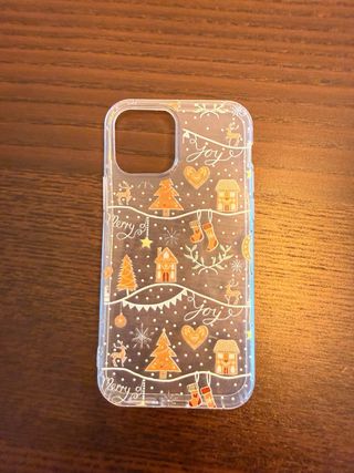 Set di 4 custodie per iPhone 12 e 13. Include design vari. - Custodia trasparente con punti colorati. - Custodia rosa con design a raggi. - Custodia trasparente con design natalizio. - Custodia liscia color grigio chiaro.