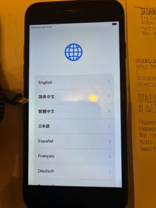 iPhone 7 di colore nero. Il dispositivo è pronto per la configurazione. - Schermo da 4.7 pollici. - Fotocamera posteriore da 12 MP. - Chip A10 Fusion. Batteria praticamente nuova. Non rovinato..con carica batterie e cover a portafogli