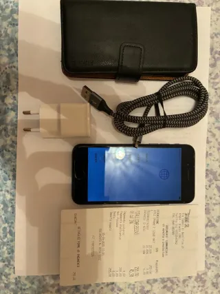 Telefono cellulare in buone condizioni. Capacità di 64GB, molto ben curato, sempre protetto con cristalli protettivi e custodia, senza alcuna macchia. Con l'ultima versione di iOS, colore nero, capacità 75%, include 4 cristalli protettivi, auricolari nuovi e due custodie.