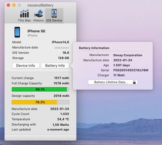 Telefono mobile Apple in colore nero con capacità di 64 GB. Capacità totale: 64 GB. Spazio disponibile: 43,33 GB. Indirizzo Wi-Fi: E0:EB:40:98:8A:4D. Bluetooth: E0:EB:40:99:44:0D.