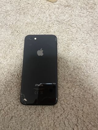 Telefono cellulare Apple iPhone 8 in colore nero. - Schermo da 4,7 pollici. - Fotocamera posteriore da 12 MP. - Capacità di archiviazione da 64 GB. Sarebbe necessario sostituire la batteria poiché non dura molto. Il tasto per silenziare a volte non funziona.