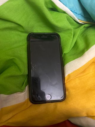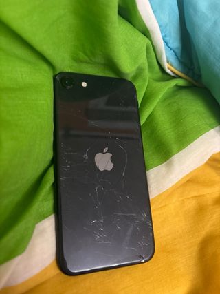 Telefono cellulare iPhone SE in colore nero. - Schermo da 4,7 pollici. - Fotocamera posteriore da 12 MP. - Chip A13 Bionic. Non ha batteria originale, si scarica più velocemente del solito. Lo schermo posteriore è leggermente rotto.