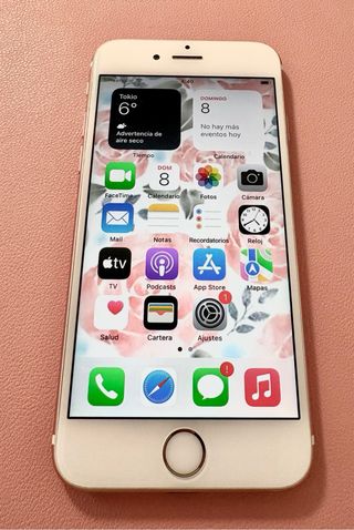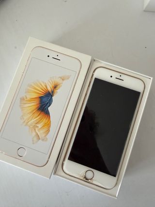 Telefono cellulare iPhone 6S in colore rosa con 32 GB di spazio di archiviazione. - Schermo da 4,7 pollici. - Fotocamera posteriore da 12 MP. - Fotocamera frontale da 5 MP. - Sensore di impronte digitali. Funziona tutto perfettamente Con scatola e caricabatterie