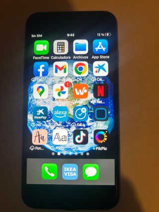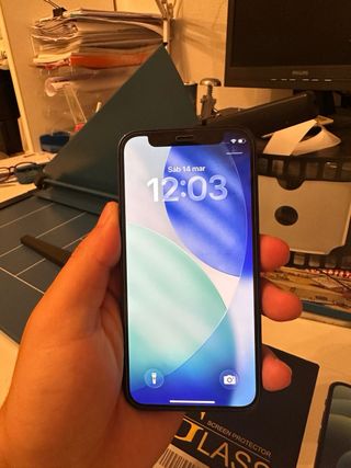 Telefono mobile Apple iPhone 12. - Schermo da 6,1 pollici. - Fotocamera dual da 12 MP. - Chip A14 Bionic. Il telefono funziona bene, ma la fotocamera frontale non funziona e non ha il wifi.