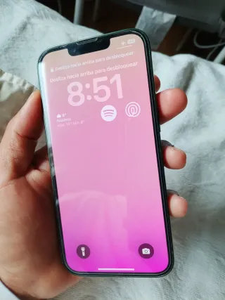 Telefono cellulare iPhone 13 in colore verde. - Schermo da 6,1 pollici. - Capacità di archiviazione di 128 GB. - Stato della batteria 85%. - Il cellulare è in perfette condizioni, l'unico difetto è un piccolo graffio nella parte superiore. - Tutto è originale