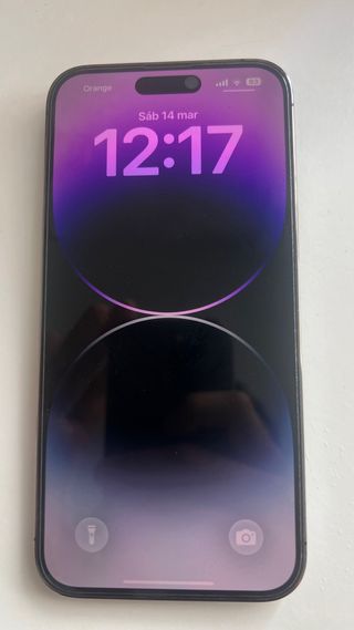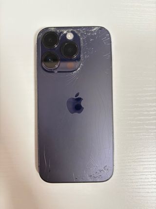 Telefono cellulare iPhone 14 Pro. Include cavo originale e scatola originale. - Parte posteriore rotta. - Batteria al 68%. - Schermo da 6,1 pollici. - Fotocamera principale da 48MP. - Chip A16 Bionic. Per il resto funziona perfettamente.