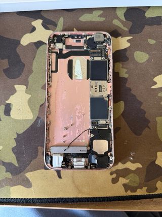 Componenti di ricambio per iPhone 6s. - Schermo nero. - Frame interno con componenti.