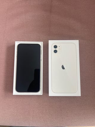 Telefono cellulare iPhone 11 in bianco. - Schermo da 6,1 pollici. - Doppia fotocamera posteriore. - Chip A13 Bionic. - Batteria originale. Non ricondizionata. - In regalo le 3 custodie nella foto. - Batteria all'82% come si vede nella foto. - Contattate solo se veramente interessati. - Vivo a Boadilla. Considerate la distanza.