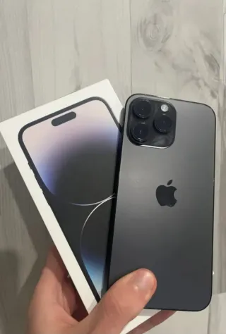 Telefono mobile Apple iPhone 14 Pro Max. - Schermo da 6,7 pollici. - Fotocamera principale da 48 MP. - Chip A16 Bionic. Include: scatola, cavo, batteria all'83%. Prodotto nuovo.