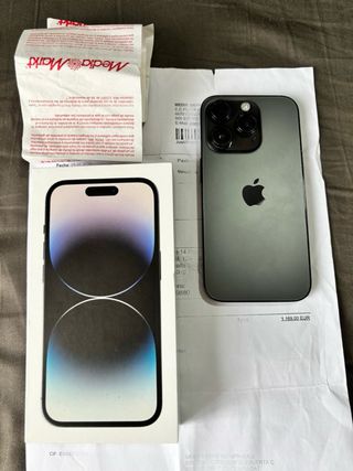 Telefono cellulare iPhone 14 Pro in colore grigio. Capacità di archiviazione di 128 GB. Schermo da 6,1 pollici. Sistema di tripla fotocamera posteriore. Batteria all'86%. Perfetto stato e tutte le parti originali, 10/10 e ottima provenienza. Venduto per cambio ad un altro cellulare.