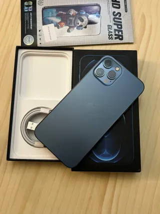 APPLE IPHONE 12 PRO MAX 128GB, blu pacifico, cellulare iOS, 256 GB, 6 GB RAM, 6,7" OLED, Ceramic Shield, Anti-impronte, Chip A14 Bionic con Neural Engine, 3687 mAh. Telefono Apple iPhone 12 Pro Max in colore blu. Include scatola originale e cavo. Il cellulare è in ottime condizioni. Stato della batteria: 78%. Tutto funziona perfettamente. - Schermo Super Retina XDR. - Sistema di fotocamere Pro. - Chip A14 Bionic. - con protezione dello schermo aggiuntiva. Prezzo originale 600-650 €