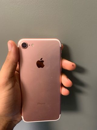 Telefono cellulare iPhone 7 in colore Oro Rosa con 32GB di spazio di archiviazione. - Schermo da 4,7 pollici. - Fotocamera posteriore da 12 MP. - Fotocamera frontale da 7 MP. - Resistente a schizzi, acqua e polvere. Include auricolari originali e una custodia in silicone.