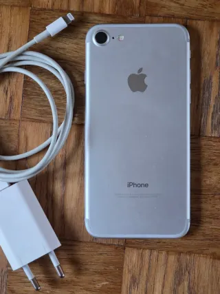 iPhone 7 32GB argento. Buono stato per gli anni che ha, sempre in custodia. Non è stato utilizzato per 3 anni poiché è un secondo cellulare per emergenze. Il telefono funziona perfettamente. Si vende con tutto ciò che si vede nelle foto, completo di tutti gli accessori originali nella sua scatola tranne gli auricolari, che si sono rotti. La batteria è al 64%. Lo schermo ha una piccola macchia nella parte inferiore. Il cristallo della fotocamera ha una piccola crepa che non influisce sulla qualità delle foto, che escono bene. Verrà consegnato resettato ai valori di fabbrica. La custodia è da buttare, la mostro solo per mostrare che era sempre in custodia. Prezzo non negoziabile.