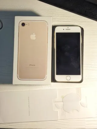 iPhone 7 Apple completamente rinnovato. Lo schermo è stato recentemente sostituito e il Touch ID funziona senza problemi. Capacità: 32GB, batteria 80%, schermo da 4,7 pollici, colore dorato. Da notare alcune macchie sulla porta di caricamento, ma non influiscono sulla funzionalità. Se sei di Lepe (Huelva), è possibile trattare di persona.
