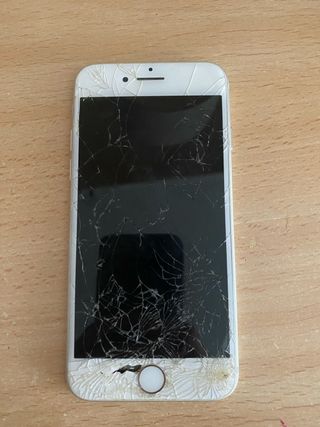 Telefono cellulare iPhone 6 in colore argento e bianco. - Schermo da 4,7 pollici. - Fotocamera posteriore da 8 MP. - Capacità di archiviazione di 16 GB. - Tutto funziona. - Piccolo urto, vedi foto. - Senza accessori. ** SPEDIZIONE SOLO **