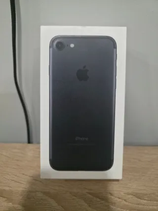 Telefono cellulare iPhone 7 in colore nero. Design elegante e compatto. Fotocamera posteriore di alta qualità. Schermo nitido e luminoso. Con custodia e cavo di ricarica.