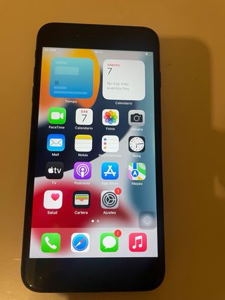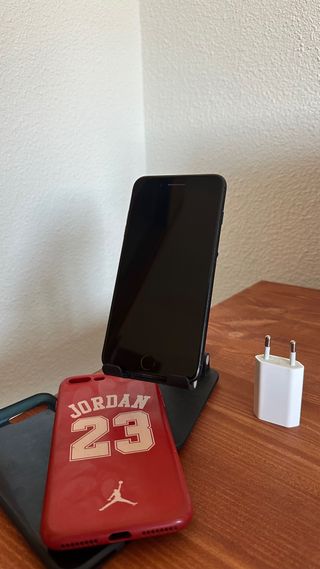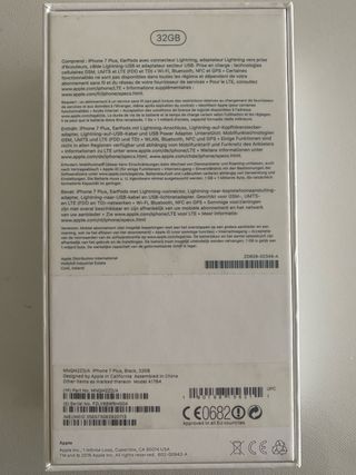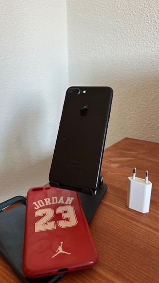 Telefono cellulare iPhone 7 Plus in colore nero. - Schermo da 5,5 pollici. - Fotocamera posteriore da 12 MP. - Scatola inclusa. - Caricatore non originale incluso. Presenta un piccolo segno nella parte superiore come si vede nella foto.