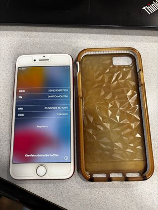 Telefono cellulare iPhone 7 da 64GB di colore rosso. Ideale per ottenere parti di ricambio o per riparazione. Appare un messaggio sullo schermo e non ho idea del motivo. La batteria è nuova, sostituita 6 mesi fa. - Capacità di 64GB. - Colore rosso.